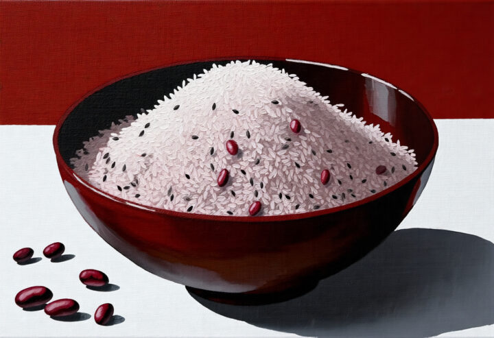 Sekihan is red rice cooked with glutinous rice and adzuki beans, traditionally served at celebrations. Today, it’s a common and beloved dish even sold at convenience stores.